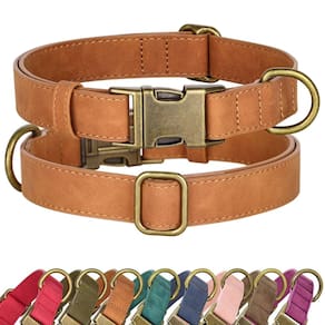 - Confortável e resistente: Feito de couro PU, as coleiras para cães são tão macias e suaves que farão com que seus cães se sintam confortáveis e confortáveis mesmo usando o dia todo, e não os machucarão. Também durável e forte o suficiente para uso prolongado.