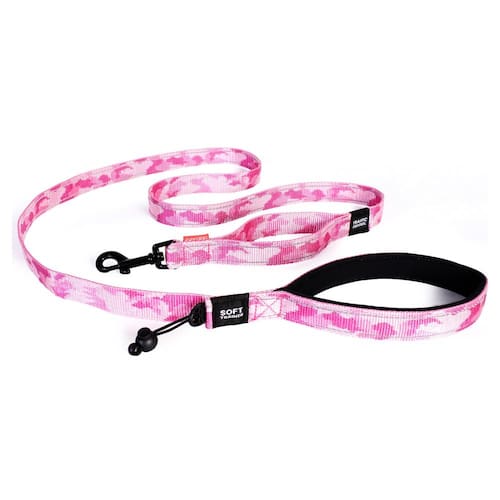 Coleira para cães EzyDog Soft Trainer com alça de controle de tráfego — costura refletiva para segurança noturna e maior resistência e conforto para treinar cães pequenos (menos de 26 libras) (72 polegadas, camuflagem rosa)