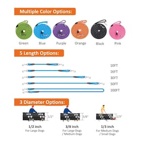 - Vários tamanhos e diâmetros. Coleira longa para cães: 3 m, 16 pés, 30 pés, 50 pés e 30 m, vários tamanhos podem atender a diferentes propósitos de treinamento. Nossa coleira para cães está disponível em diâmetro de 1/7.6 cm, 3/20.3 cm, 1/5.1 cm. O diâmetro de 1,3 cm pode atender a cães pequenos, gatos ou outros animais pequenos. O diâmetro de 3/20.3 cm e 1/5.1 cm é a melhor escolha para treinar coleiras para cães grandes ou médios.