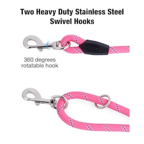 - Cabo de amarração para cães: ambas as extremidades da nossa coleira de corda para cães têm um gancho giratório de aço inoxidável resistente que pode girar 360 graus. Você pode amarrar uma extremidade desta coleira de treinamento ao seu corpo ou árvores, etc., para que você possa liberar suas mãos ao trans, caminhadas, caminhadas, etc.