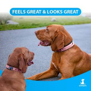 - ? É ótima e fica ótima em seu cão — esta coleira vem com uma base acolchoada macia que fará com que seu cão se sinta confortável e não saiba que está usando uma coleira grossa. Além de um toque de estilo com ilhós e uma coleira de cachorro com fivela niquelada.