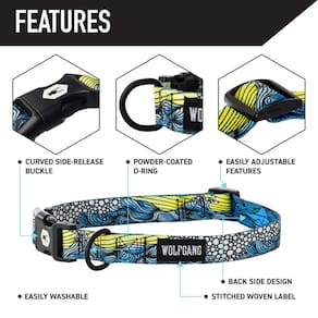 Wolfgang Coleira para cães resistente, ajustável com fivela de nylon de liberação rápida para caminhadas e treinamento, estampa DawnPatrol, pequena