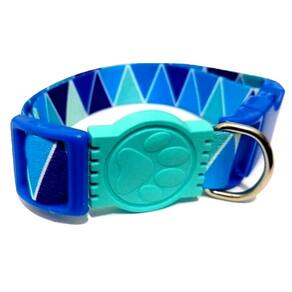 Coleiras confeccionadas em fita 25 mm de seda estampa azul; Presilha de plástico altamente resistentes com passadores de ajuste e borracha em formato de pata; cor: azul Tamanho único. Especificações Circunferência: 32 a 49 cm. O seu pet vai ficar todo estiloso e alegre com a coleira de seda. Marca: Não Informado