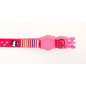 Coleiras confeccionadas em fita 15 mm de seda estampa da Monster High na cor rosa; Presilha de plástico altamente resistentes com passadores de ajuste e borracha em formato de pata; Cor: rosa Tamanho único. Circunferência: 22 a 35 cm. O seu pet vai ficar todo estiloso e alegre com a coleira de seda. Marca: Nica pet
