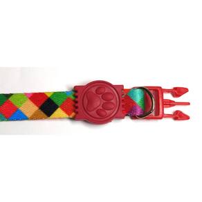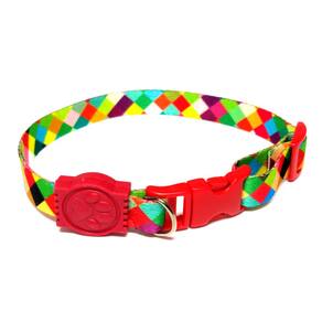 Coleiras confeccionadas em fita 15 mm de seda estampa xadrez vermelho; Presilha de plástico altamente resistentes com passadores de ajuste e borracha em formato de pata; cor: vermelho Tamanho único. Especificações Circunferência: 22 a 35 cm. O seu pet vai ficar todo estiloso e alegre com a coleira de seda. Marca: Nica pet