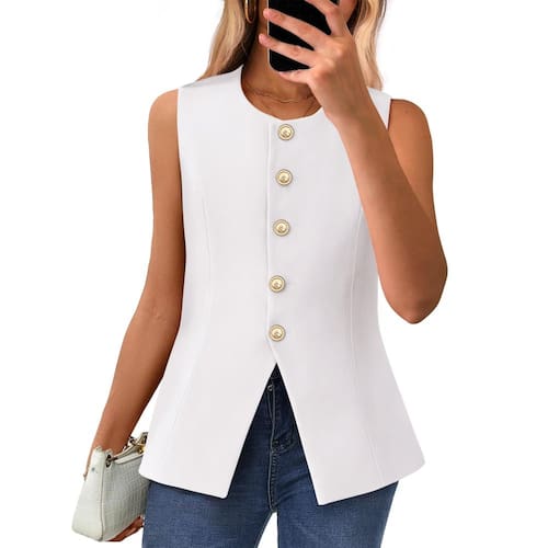 Marca: BTFBM Gênero: mulheres, senhoras, meninas Tipo de roupa: Coletes femininos Material: 100% poliéster Padrão: cor sólida Fecho: Botão Decote: Gola redonda Estilo: Casual / Elegante / Sexy / Chique Fitness: ajustado Mangas: sem mangas Cor: Branco / Cáqui / Vermelho / Verde Brilhante / Rosa / Preto / Verde Exército / Azul Claro Estação: primavera/verão/outono/inverno. Design exclusivo: sem mangas/carcela de botão Ocasião: uso diário/casual/aniversário/ao ar livre/trabalho/escritório/saída à noite/namoro/férias/feriado/clube/festa/reunião/negócios/regresso a casamento/dia de Ação de Graças/Formatura/festa de Natal/Ano Novo - CARACTERÍSTICAS: P = EUA 4-6, M = EUA 8-10, G = EUA 12-14, GG = EUA 16-18, XGG = EUA 20 / colete feminino / colete elegante para mulheres / gola redonda / carcela de botão funcional / com forro / comprimento do quadril / ajustado / cor lisa - MATERIAL: O colete feminino é feito de material macio e leve, adequado para primavera, verão e outono - Design: os blazers sem mangas para mulheres apresentam uma silhueta clássica, oferecendo uma aparência simples e elegante. Além disso, sua gola redonda e fecho frontal com botões adicionam um toque sofístico a este colete de terno - OCASIÃO: O colete sem mangas para mulheres é adequado para muitas ocasiões, como uso diário / casual / aniversário / exterior / trabalho / escritório / saída à noite / namoro / férias / férias / clube / festa / reunião / negócios / baile / casamento / formatura - COR: colete de verão cáqui para mulheres / coletes vermelhos para mulheres 2025 moderno / terno verde brilhante colete para mulheres / colete rosa para mulheres elegante / colete feminino preto / colete branco / roupas casuais de negócios verde exército para mulheres / coletes femininos azul claro moda casual