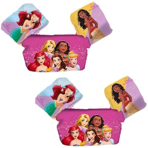 Tamanho aproximado: 35 cm Estampa: Princesas Disney Material resistente Auxilia na flutuação Ideal para fase de adaptação à água