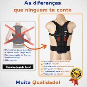 - Correção de toda a coluna vertebral, através de talas rígidas de alumínio. - Alinhamento dos ombros, deixando uma postura mais bonita e saudável. - Possui 4 pontos magnéticos (imãs) que estimulam a circulação sanguínea no local de aplicação. - Melhoras nas dores lombares. - Tratamento de cifose torácica.