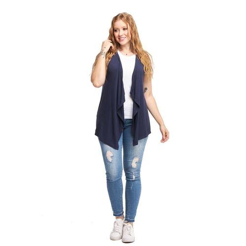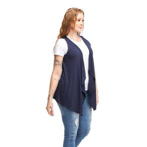 Colete de Bico Blusa Cardigan Feminino Terceira Peça Viscolycra Ca5 - Azul Marinho - G