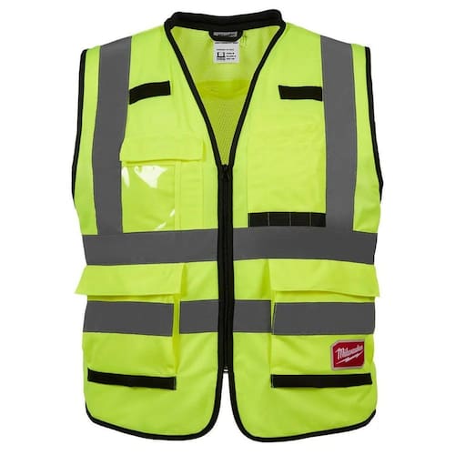 Os Coletes de Segurança Refletivos da Milwaukee oferecem amplo armazenamento com 15 bolsos, incluindo porta-ID, bolso para tablet e três bolsos internos. Os bolsos frontais são reforçados com tecido de alta resistência a rasgos 600D para maior duração, e a gola acolchoada proporciona conforto.