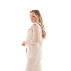 O Colete Jeans Oversized é uma peça de estilo casual e moderno, que traz um toque de descontração ao visual. Com corte amplo e estrutura solta, o colete oferece conforto e liberdade de movimento, perfeito para quem busca um look descomplicado, mas cheio de personalidade.Composição: 100% Algodão