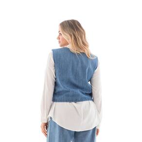 O Colete Jeans é ideal no guarda-roupas feminino, confeccionado em material jeans 100% Algodão e lavação diferenciada. Possui fechamento por botões no entremeio e bolsos. Sendo uma peça versátil que pode ser usada aberta ou fechada. Capaz de transformar um look simples, ao look mais despojado, tanto no verão como no inverno ele sempre é bem-vindo. Composição: 100%Algodão