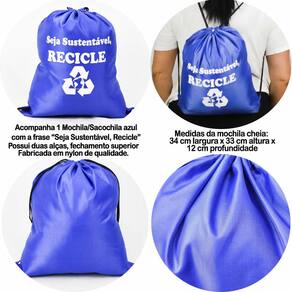 1 Mochila / sacochila "Seja Sustentável, Recicle"