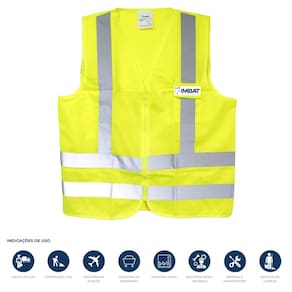 Colete de sinalização de alta visibilidade, com 1 bolso. Confeccionado em tecido fluorescente 100% poliéster, combinado com faixas retrorrefletivas repelentes de água e fechamento frontal em zíper.