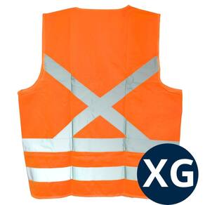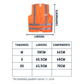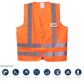Colete de sinalização de alta visibilidade, com 1 bolso. Confeccionado em tecido fluorescente 100% poliéster, combinado com faixas retrorrefletivas repelentes de água e fechamento frontal em zíper.