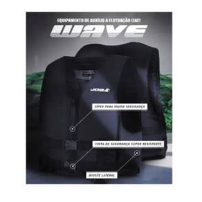 Fabricante: JOGÁ Modelo: Wave Peso Máx. Suportado: 50kg Produto não homologado Produzido com matéria prima nacional Ajuste lateral com elástico Fechamento frontal com zíper Equipamento auxiliar de flutuação EAF Informações e cuidados de uso na parte interna do colete. Correias de segurança com ajuste 1 vertical com armazenamento interno Cor: Preto