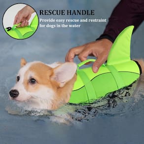 colete salva-vidas para cães - Linda barbatana de tubarão: um colete salva-vidas para cães com um design exclusivo e encantador de barbatana de tubarão veste seu filhote como um tubarão fofo; confiança inspiradora para filhotes amantes da terra se tornarem aventureiros aquáticos; bom para nadar, rafting, surf e muito mais - Flutuação superior: Coloque a segurança em primeiro lugar com nosso colete salva-vidas para cães; nosso colete de natação para cães feito com os mesmos materiais do colete salva-vidas humano, oferece excelente flutuabilidade, garantindo que seu cão permaneça flutuando durante qualquer atividade aquática; aproveite o tempo de água sem preocupações - Resgate fácil: nunca tenha medo de situações ao mar com nosso colete flutuante para cães; ele possui uma alça resistente para facilitar o levantamento da água e ajuda a ensinar cães novatos a nadar; basta segurar a alça e guiá-los até que estejam confiantes - Alta visibilidade: para garantir que seu animal de estimação esteja sempre à vista, nosso colete salva-vidas para filhotes vem em cores vibrantes para melhorar a visibilidade na água, facilitando a localização do seu cão em todos os momentos; Além disso, o gancho resistente com anel em D é bom para a coleira de cachorro - Personalizado para caber perfeitamente: nossos coletes salva-vidas para cães servem para cães pequenos, médios e grandes; seu design ajustável ao redor da barriga e do pescoço oferece amplo espaço enquanto mantém um ajuste confortável, permitindo movimento natural e uma postura de natação relaxada - Meça antes de comprar: o colete flutuante para cães é uma peça flutuante de meio comprimento que não requer cobertura total das costas para funcionar como pretendido. A circunferência do peito é a medida decisiva; se o tamanho do seu animal de estimação estiver entre dois tamanhos, peça o próximo tamanho