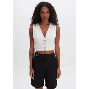 O colete é a peça do momento! Confeccionado em sarja, ele é super versátil, possui modelagem cropped e um elegante fechamento por botões. Este item é simplesmente indispensável no guarda-roupa das fashionistas.