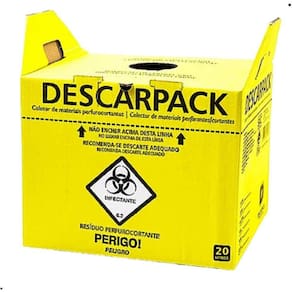 Coletor Material Perfuro Cortante 20 Litros Un. DescarpackClassificação HOSPITALAR Registro MAPA ISENTO Registro MS ISENTO Coletor para Material Perfurocortante DescarpackbrFabricado em papelão ondulado e reforçado internamente com papelão couroTrava de segurançaDesconectador de agulha no modelo 1,5 LAlça dupla para transporte nos modelos 7,0 L, 13,0 L e 20,0 LDisponível na cor amarela