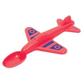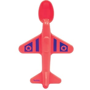 Colher divertida para bebês e crianças de avião Buba "Olha o aviãozinho!" "Vamos abrir o bocão para o aviãozinho entrar na garagem!"