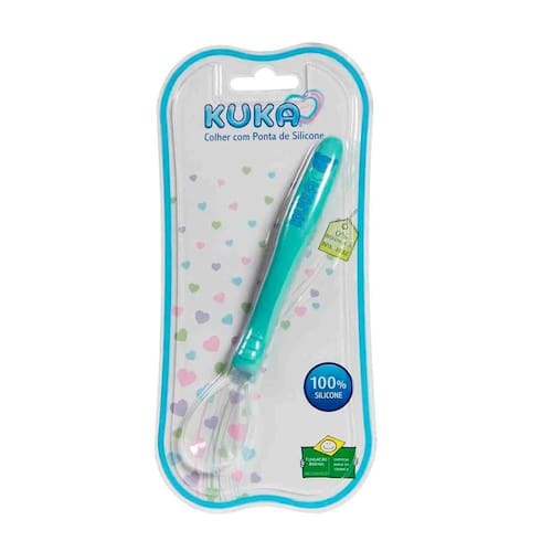 Colher azul com ponta de silicone - kuka A colher com ponta de silicone da kuka é perfeita para as primeiras refeições, pois é macia ao contato com a gengiva e não machuca o bebê. Ela também é ideal para a fase de introdução de alimentos sólidos, tem o cabo ergonômico, anti-deslize, ponta em silicone ultramacio e super fácil de limpar. As suas bordas são arredondadas para não machucar as gengivas do bebê. Produzida especialmente para a alimentação de crianças a partir de 4 meses.