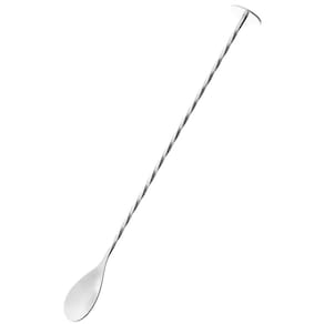 A colher bailarina é aquele tipo de utensílio que é muito utilizado por todo e qualquer bartender, seja ele iniciante ou mais experiente. Ela deve estar presente em qualquer kit bartender e em qualquer bar. Essa colher conta com a ponta em disco que tem várias utilidades como apoio ou até mesmo um macerador de cubos de açúcar, por exemplo e o cabo espiral que é funcional e ajuda na preparação de diversos drinks. Ela é feita em material inox e possui ótimo resistência devido a qualidade do material, sendo duradoura, possui o aço mais espesso e mais forte. O comprimento total dessa colher bailarina é de 28cm sendo ideal para coqueteleiras e copos mais fundos, a cumbuca dela é larga com total de 3,5cm de largura.