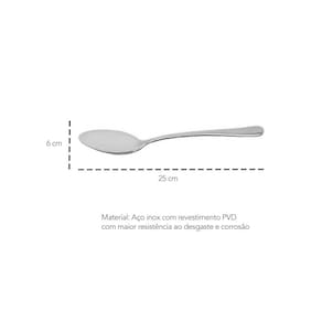 Contem: 1 Colher Dimensao: 25 x 6 cm Material: Aço Inox CASACHA especializada em artigos para casa, cozinha, lavanderia e banheiro.