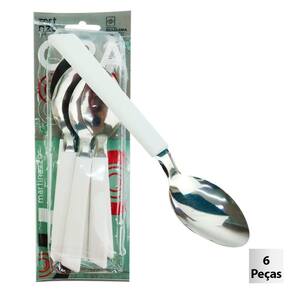 Colher de Mesa Inox 6 Peças OPA Branco - Os talheres Martinazzo são produzidos com o melhor material em aço inox, com cabo em plástico polipropileno modelo Salvia;\n- Fabricado no Brasil;\nEspecificações:\nMarca : MARTINAZZO\nTipo de material : Aço inox\nCores ou Estampa : Branco\nDimensões do Produto : 17 X 4 X 0,5 CM\nDimensões da Embalagem : 25 X 9 X 2,5 CM\nPeso Bruto (Gramas) : 0.111 Marca: Não Informado