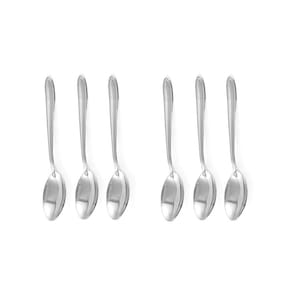 Contem: 6 Colheres de Mesa Medidas: 18,5 x 4 x 0,15 cm Pode lavar na maquina de lavar louças