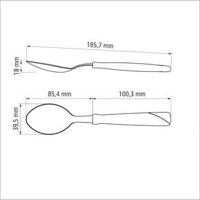 Realize suas refeições com toda a alegria e praticidade que a Colher de Mesa Tramontina New Kolor com Lâmina em Aço Inox e Cabo de Polipropileno Azul pode fornecer. A peça possui lâmina em aço inox e seu cabo de polipropileno traz à peça maior facilidade no manuseio, pois seu formato anatômico permite um encaixe perfeito à mão. E para que você tenha ainda mais facilidade durante o uso, a colher pode ser levada à máquina de lavar. Orientações A lâmina de aço inox garante maior resistência devido a espessura do aço e a estampagem da lâmina. O cabo de polipropileno possui maior resistência e durabilidade. Pode ir à máquina de lavar louças facilitando seu dia a dia. Observações Antes da primeira utilização, lave bem a peça e seque-a.Produto cortante e perfurante: tenha cuidado ao manusear e mantenha fora do alcance das crianças.Para maior durabilidade do produto recomenda-se secar bem antes de guardar, mesmo após lavagem em máquina. Para descarte do produto e embalagem siga as orientações de reciclagem vigentes. Características Gerais EAN13 7891112056794 DUN14 17891112056791 NCM 8215.99.10 Peso Líquido 0,0277 kg. Peso Bruto 0,0277 kg. Metragem 0,000144 m³. Dimensões Embalagem (Compr. X Larg. X Alt.) 185x 39x 20 mm. Cor 1 041E42 Hexa
