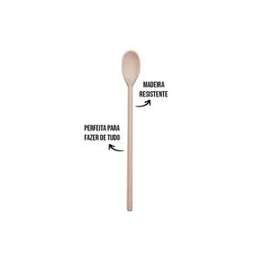 Colher de pau madeira tamanho 25cm resistente cozinheiros