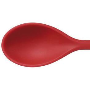 Colher De Silicone Vermelha - Mor Perfeita para auxiliar no preparo dos alimentos, a Colher de Silicone Mor é funcional e resistente. Produzida em silicone de ótima qualidade, ela é extremamente prática: possui um orifício para ser pendurada, ficando à mostra para facilitar seu dia a dia. Por ser um utensílio leve, permite ser manejada por pessoas de qualquer idade e pode ser levada ao fogo sem riscar suas panelas e demais utensílios, suportando temperaturas de até 240°C. Super fácil de lavar, não absorve odores indesejáveis, dificilmente mancha e não gruda. Especificações: Material Silicone Cor Vermelha Altura 2,0 Centímetros Largura 5,50 Centímetros Comprimento 28,00 Centímetros Peso 120 gramas
