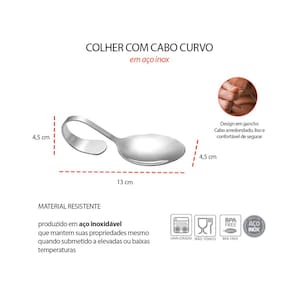 Colher Finger Food para aperitivos e entradas. A colher curvada é perfeita para servir pequenas porçoes, entradas e aperitivos em festas ou jantares. Os talheres e utensilios de cozinha da CASACHA sao produzidos em aço inoxidavel, altamente duraveis e acabamento impecavel. Ideal para restaurantes, buffet, bares e bistros.