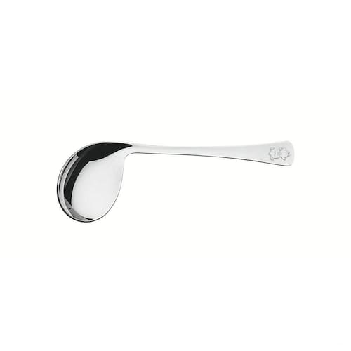 Colher curvada permite que a criança leve a comida mais facilmente até a boca, especialmente criada para incentivar e auxiliar no desenvolvimento das crianças.