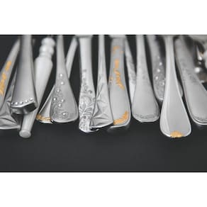 - De aço inoxidável, altamente durável, mantém as características , preservando a beleza, higiene e durabilidade do material. - Acabamento brilho e fosco. - Peça com cristais no cabo.