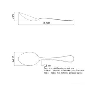 Colher com bojo em formato simétrico e bordas cuidadosamente arredondadas, proporcionando maior conforto no . Totalmente feita de aço inox, altamente durável, mantém suas características , preservando a beleza, a higiene e a durabilidade do material. Acabamento em alto brilho.Pode ser lavada diariamente na máquina de lavar louças.