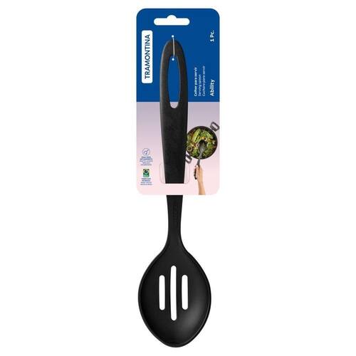 Colher Para Servir Perfurada Tramontina Ability Em Nylon Preto Colher para Servir Perfurada Tramontina Ability em Nylon Preto A Colher para Servir Perfurada Tramontina Ability em Nylon Preto é um utensílio que leva praticidade e versatilidade para sua mesa. Ela é perfeita para servir alimentos onde seja necessário escorrer algum caldo, como legumes cozidos. Produzida em nylon, pode ser utilizada em temperaturas de até 180 graus e em panelas com revestimentos antiaderente e cerâmicos, pois não os danifica. Além disso, é muito fácil de limpar e pode ser levada à máquina de lavar louças, facilitando sua rotina na cozinha!