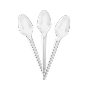 Colher de plástico apropriado para bebidas quentes e frias, tais como café, chá, chocolate, drinks, sopas e similares, produzido em poliestireno convencional (cristal transparente), atóxico e apropriado para contato com alimentos, com 13 cms de comprimento.