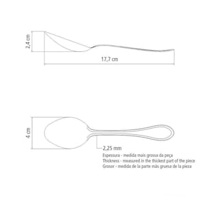 Colher com bojo em formato simétrico e bordas cuidadosamente arredondadas, proporcionando maior conforto no uso. Totalmente feita de aço inox, altamente durável, mantém suas características , preservando a beleza, a higiene e a durabilidade do material. Acabamento em alto brilho. Pode ser lavada diariamente na máquina de lavar louças.