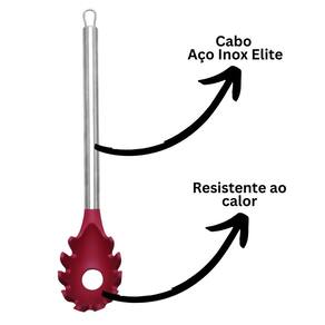 Seu corpo em silicone prime resistente ao calor é totalmente seguro para uso em panelas antiaderentes, cerâmica, teflon e inox, evitando riscos e danos ao revestimento. O cabo em aço inox Elite premium garante durabilidade, resistência e um acabamento sofisticado.