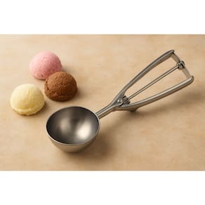 Essa colher de sorvete em aço inox de alta qualidade é resistente, durável e possui mecanismo ejetor, que garante a retirada perfeita das bolas de sorvete sem esforço.