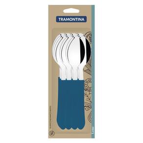 Conjunto de Colheres de Mesa Tramontina Leme com Lâminas em Aço Inox e Cabos de Polipropileno Azul Oceano 12 peças