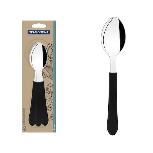 Conjunto de Colheres de Mesa Tramontina Leme com Lâminas em Aço Inox e Cabos de Polipropileno Preto 3 Peças