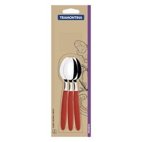 Conjunto de Colheres para Chá Tramontina Ipanema com Lâminas em Aço Inox e Cabos de Polipropileno Vermelho 3 Peças