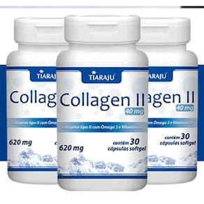 O colágeno tipo ii é um colágeno derivado da cartilagem do frango. Sua extração garante a obtenção de um colágeno puro, sem alteração molecular, com atividade biológica inalterada. Collagen ii atua diretamente na reposição do colágeno em casos de doenças relacionadas à cartilagem, como a osteoartrite.Collagen ii contém ainda ômega 3 e vitamina d.Registro no m.S. Nº 6.5204.0148.001-0Ingredientes: ômega 3 de óleo de peixe, cartilagem de frango (colágeno tipo ii), emulsificante lecitina de soja e colecalciferol (vitamina d). Cápsula: gelificante gelatina, umectante glicerina, corantes ins 171 e ins 133.Apresentação / embalagem: frasco contendo 30 cápsulas softgel de 620 mg.Sugestão de uso: ingerir 1 cápsula ao dia, com 200 ml (1 copo) de água, ou conforme orientação do médico ou nutricionista.Gestantes , nutrizes e crianças até 3 (três) anos, somente devem consumir este produto sob orientação de nutricionistas ou médicos.Ministério da saúde adverte: não existe evidências científicas comprovadas de que este alimento previna, trate ou cure doenças.Alérgicos contém derivados de peixe e derivados de soja.Não contém glúten.Introdução:Durante as atividades diárias de pessoas sadias, ocorpo é frequentemente submetido a ações que comprometem a integridade musculoesquelética:posturas erradas, posições sentadas continuas, movimentos repetitivos, atividades profissionais com impacto sobre as articulações, marcha prolongada, esforços físicos moderados e/ou intensos. A flexibilidade e a mobilidade das aticulações dos membros inferiores (joelhos, quadris, pés) podem ser prejudicadas pelo excesso de peso, excesso verificado nas faixas mais amplas de população no brasil (censo ibge 2010). O impacto destes fatores de risco pode ser diminuído e controlado por uma boa qualidade de vida, integrando alimentação equilibrada e aporte nutricional suplementar com substâncias seguras e eficazes sobre o sistema musculoesquelético como o ômega 3, o colágeno ii e a vitamina d. O óleo de peixe é rico em ômega 3 sob as formas de ácido eicosapentaenóico (epa) e docosahexaenóico (dha).O epa relaciona-se principalmente com a proteção da saúde cardiovascular no adulto, e o dha é considerado fundamental para o desenvolvimento do cérebro e do sistema visual, associado a saúde materno-infantil. Também oferece benefícios para articulações e saúde da pele.Recentes pesquisas têm demonstrado que o ômega 3 pode ser um excelente aliado para articulações saudáveis, pois, aumenta a mobilidade articular, diminuem os sintomas de rigidez articular matinal, reduz o inchaço nas articulações e dores articulares.O colágeno de tipo ii é proveniente do esterno de frango (65 a 70% de colágeno ii). O colágeno ii mantém níveis estáveis de colágeno endógeno na matriz extracelular para reequilibrar mais rapidamente as perdas naturais de colágeno.O consumo diário de colágeno tipo ii (40 mg/dia) contribui para a manutenção da flexibilidade e da mobilidade das articulações; ajuda o organismo a reconstruir a cartilagem articular e contribui para a manutenção da saúde das articulações; Promove maior conforto das articulações inflamadas;Melhora a mobilidade e a flexibilidade das articulações e melhora a qualidade de vida do paciente para atividades diárias.A vitamina d fornece aos ossos níveis nutricionais adequados para a preservação da integridade óssea e evitar o enfraquecimento das estruturas ósseas.Ingredientes: ômega 3 de óleo de peixe, cartilagem de frango (colágeno tipo ii), emulsificante lecitina de Soja e colecalciferol (vitamina d). Cápsula: gelificante gelatina, umectante glicerina, corantes ins 171 e ins 133.