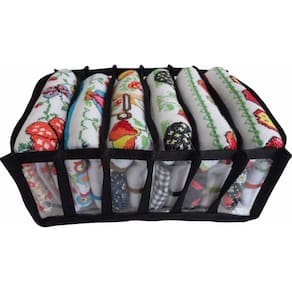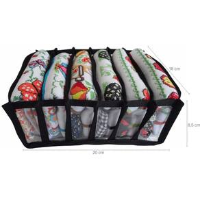 Garantia: 90 Dias / Peso: 35g / Cor: Preto e Transparente / Ref: 7898693471725 Dimensões: 20cm (C) x 18cm (L) x 8,5cm (A) Divisão: 6 nichos Capacidade: Toalhas de louças, Camisetas, Meias, entre outros. Cuidados: Lavar com sabão neutro, secar a sombra.