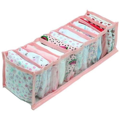Organizador de Gavetas Transparente Ideal para meias, calcinhas, cuecas, meias, sapatinhos de bebe, chaves. Contém: 11 nichos em cada organizador Características Material: PVC transparente com viés Rosa Características Gerais Cor: Transparente com viés Rosa Medidas: 8,5 L x10 A x35 C cm Marca: VB Home Contém 1 unidade