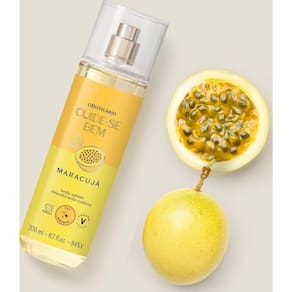 Colônia body splash cuide-se bem feira maracujá 200ml o boticário Body splash colônia cuide-se bem feira maracujá 200ml Com cuide-se bem feira, a feira é diferente, está em toda parte, vai com você aonde você for, no dia e na hora que você quiser Com uma fragrância aconchegante e deliciosa, este body splash vai manter sua pele perfumada e refrescada para enfrentar a rotina. Vegano e com 90% de ingredientes naturais, o body splash de cuide-se bem feira traz cuidado com você e com o planeta. Para uma rotina mais prática, leve e sustentável, o body splash desodorante colônia cuide-se bem feira maracujá traz a diversidade de uma feira para você se cuidar Sobre cuide-se bem feira: A linha cuide-se bem feira traz uma variedade de frutas, cores e texturas para você aproveitar uma feira deliciosa e 100% vegana. Com diversas fragrâncias e nova fórmula mais hidratante, você tem uma mistura de deliciosas vantagens. Produto não comestível. Nenhum produto do boticário é testado em animais, ou seja, este item possui selo cruelty free.