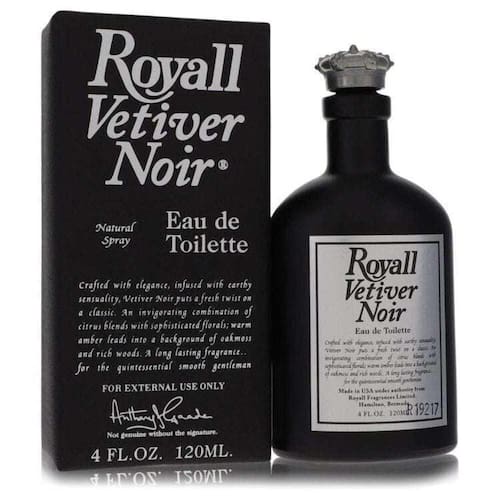 A colônia Royall Vetiver Noir, lançada em 2016 pela Royall Fragrances, é uma das poucas fragrâncias masculinas criadas por essa marca. Esta colônia sensual tem notas cítricas de topo, seguidas por flores quentes em seu coração. Uma base de âmbar quente, musgo de carvalho e outros aromas amadeirados cria um aroma terroso e memorável.