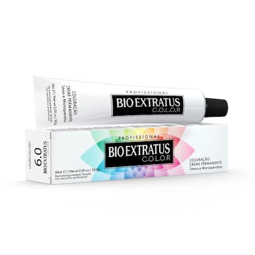 BIO EXTRATUS COLOR é uma coloração permanente de uso profissional que combina pigmentos de alta tecnologia com revelação precisa, maior fixação da cor e cobertura de até 100% dos fios brancos. Sua fórmula tem ingredientes que protegem os fios, evitando os danos comuns em processos químicos. A base cremosa oferece maior rendimento e máxima performance para coloração dos fios. A força nutritiva do tutano, a hidratação do óleo de lino, a suavidade do bisabolol e a capacidade reconstrutora da microqueratina produzem uma coloração única, com grande poder de tratamento. Resultado: brilho extremo, cabelos saudáveis, tons vivos e duradouros.
